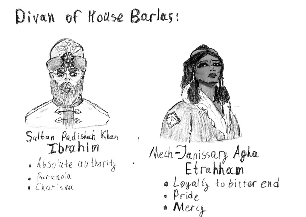 House Barlas: a couple characters that came to my mind when I was listening to the piece of OST “Savash” from a famous Turkish series, “Magnificent Century”. These are nobles of a sort of renaissance sci-fi house.